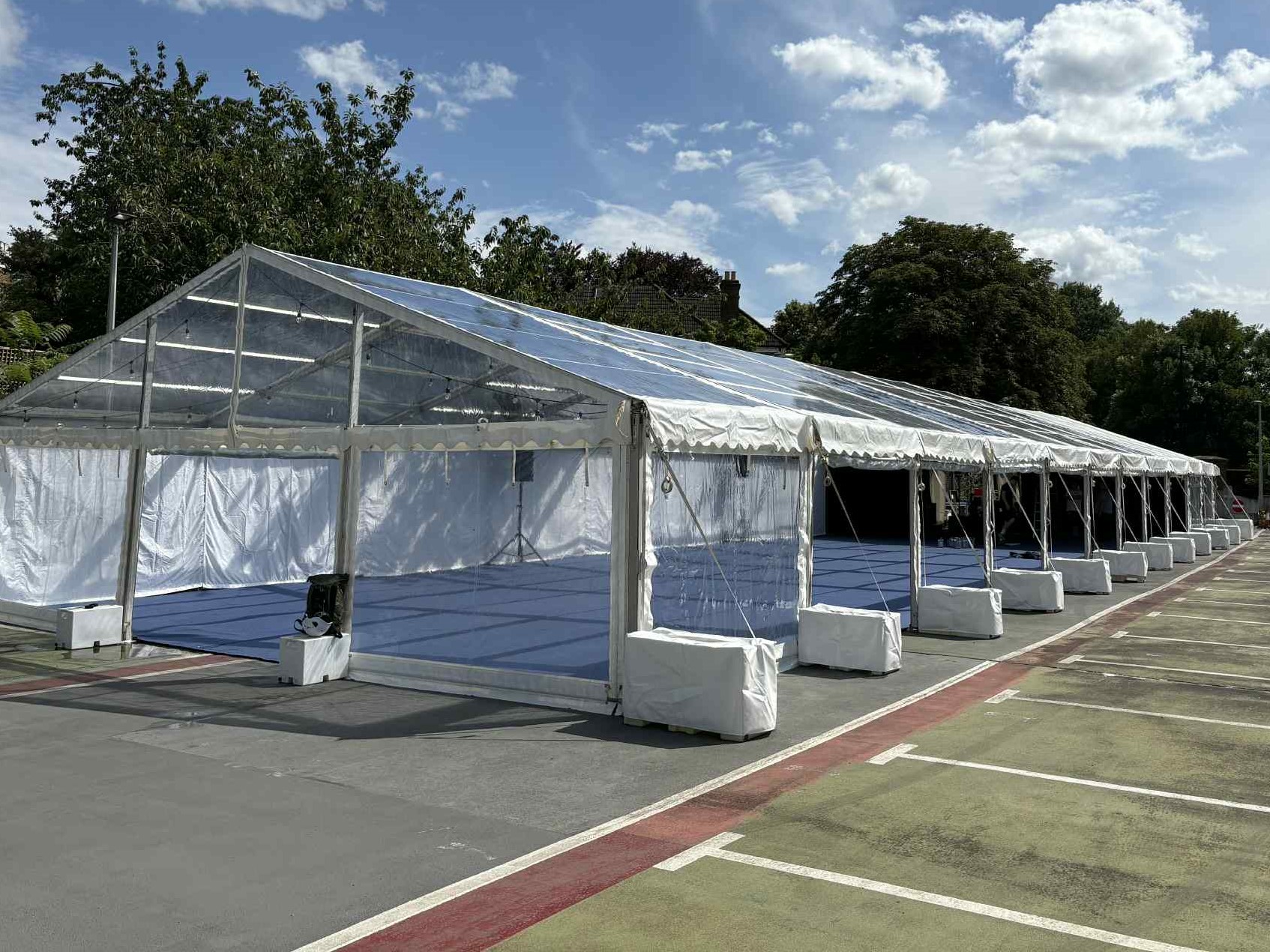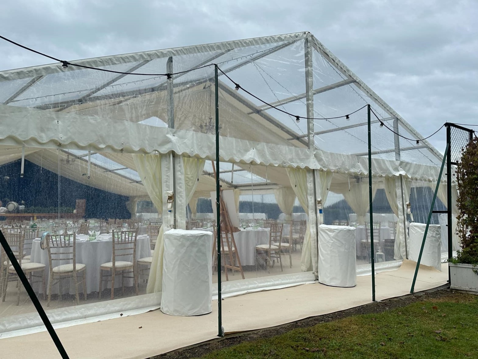 Marquee weight covers – reinforced seams, perfect fit.